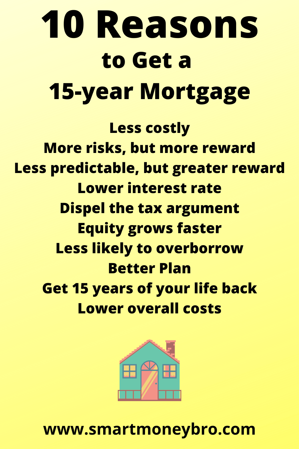 So there you have it. Those are the 10 reasons why you should choose a 15-year mortgage over a 30-year mortgage, for the sake of your long-term money goals.